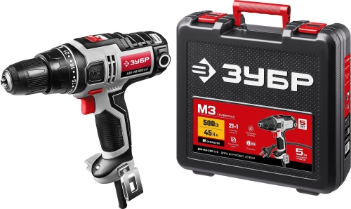 - ЗУБР ДШ-М3-500-2 К дрель-шуруповерт сетевая, 500 Вт, 0-450/0-1800 об/мин, в кейсе