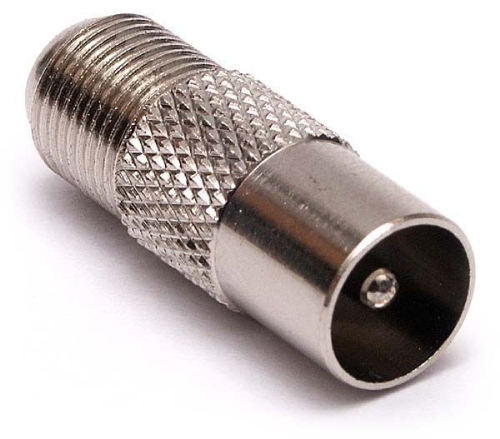 - ПЕРЕХОД гнездо F -штекер TV металл. прямой