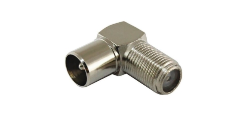 - ПЕРЕХОД гнездо F -штекер TV металл. угловой