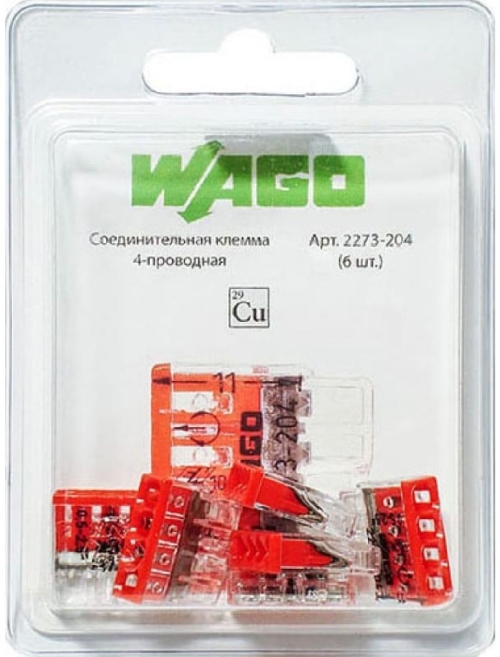 - Клемма 4-проводная компактная (6шт) WAGO