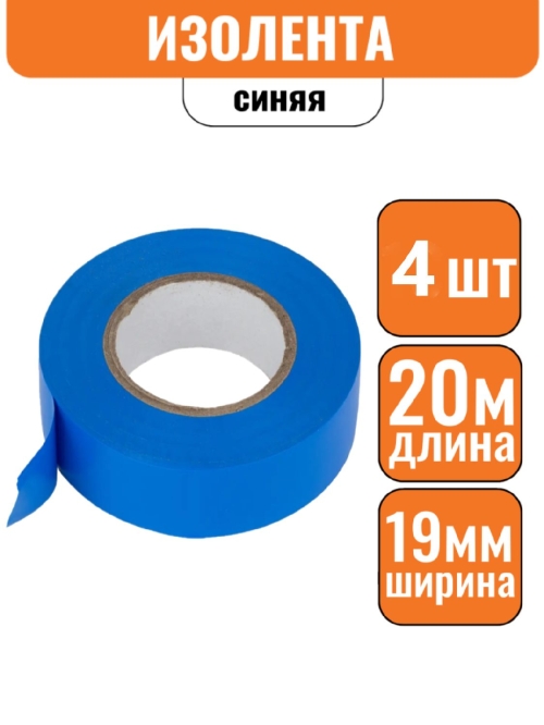 - Изолента ПВХ синяя 19мм х 20м (Большой ремонт) Эконом (1уп-4шт)