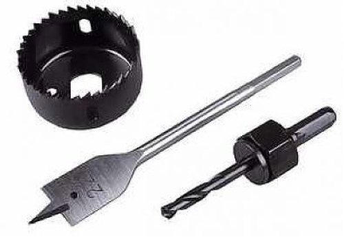 - Набор для врезки замков 3 предмета: перов. сверло, коронка 48мм, центрир. сверло