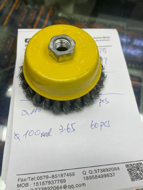- Щетка-крацовка для УШМ "чашка" крученая проволока 100мм присоединительная гайка М14