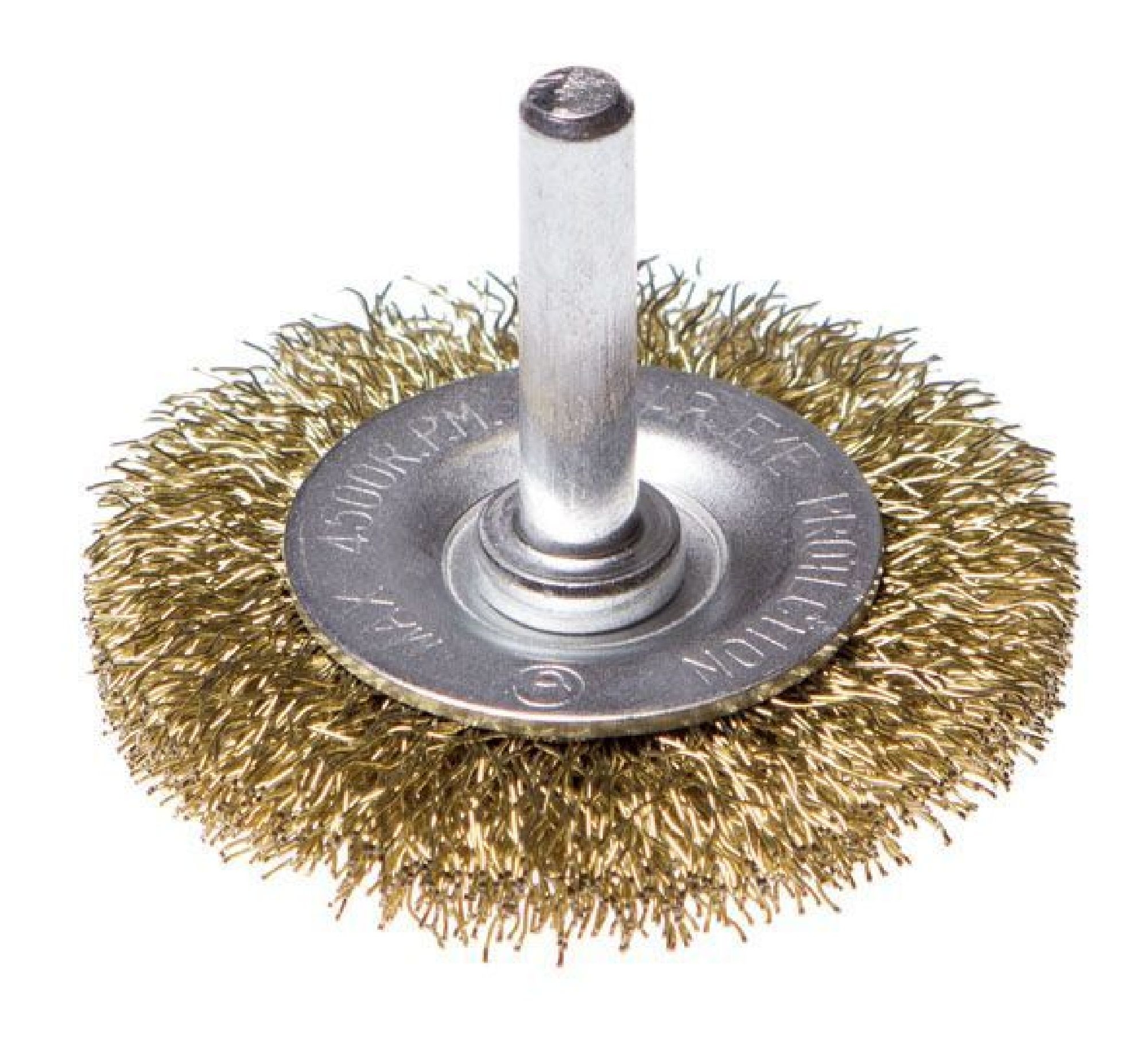 Описание товара: Щетина изготовлена из стальной латунированной, волнистой проволоки, толщиной 0,3 мм. Со шпилькой для дрели.