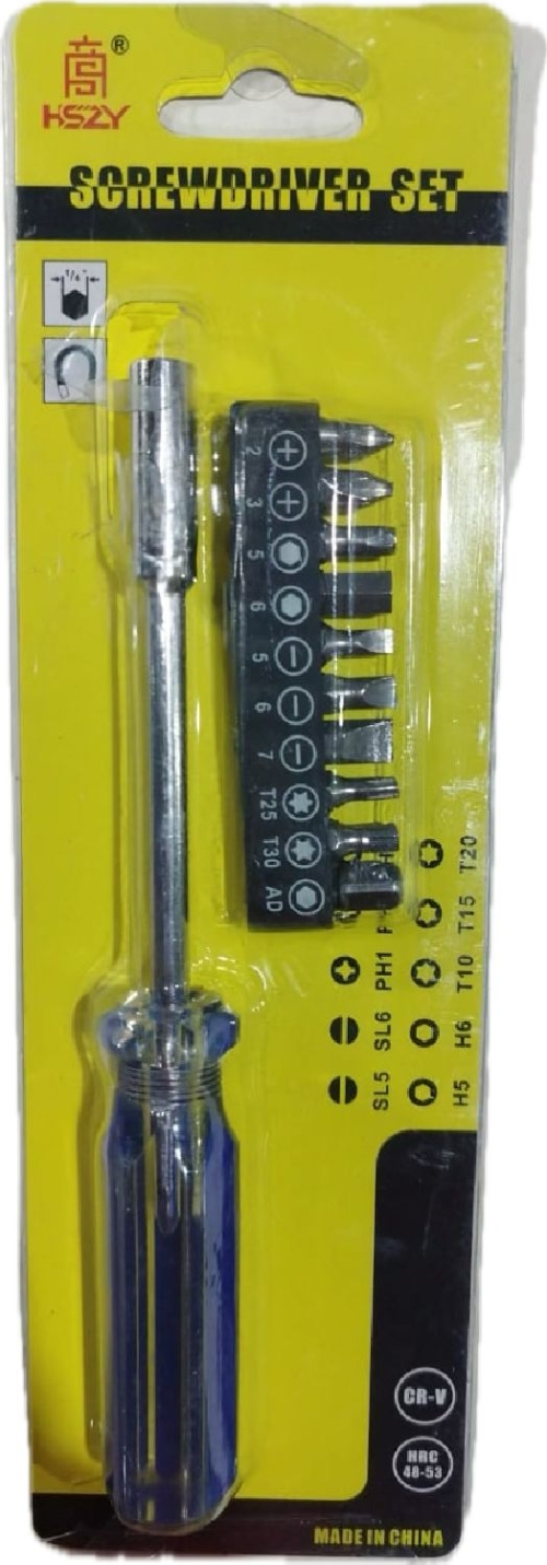 Описание товара: Битодержатель отвертки изготовлен из хромванадиевой стали. Отвертка имеет пластмассовую рукоятку. В набор входит: отвертка-держатель бит, биты 10шт, переходник 1шт.