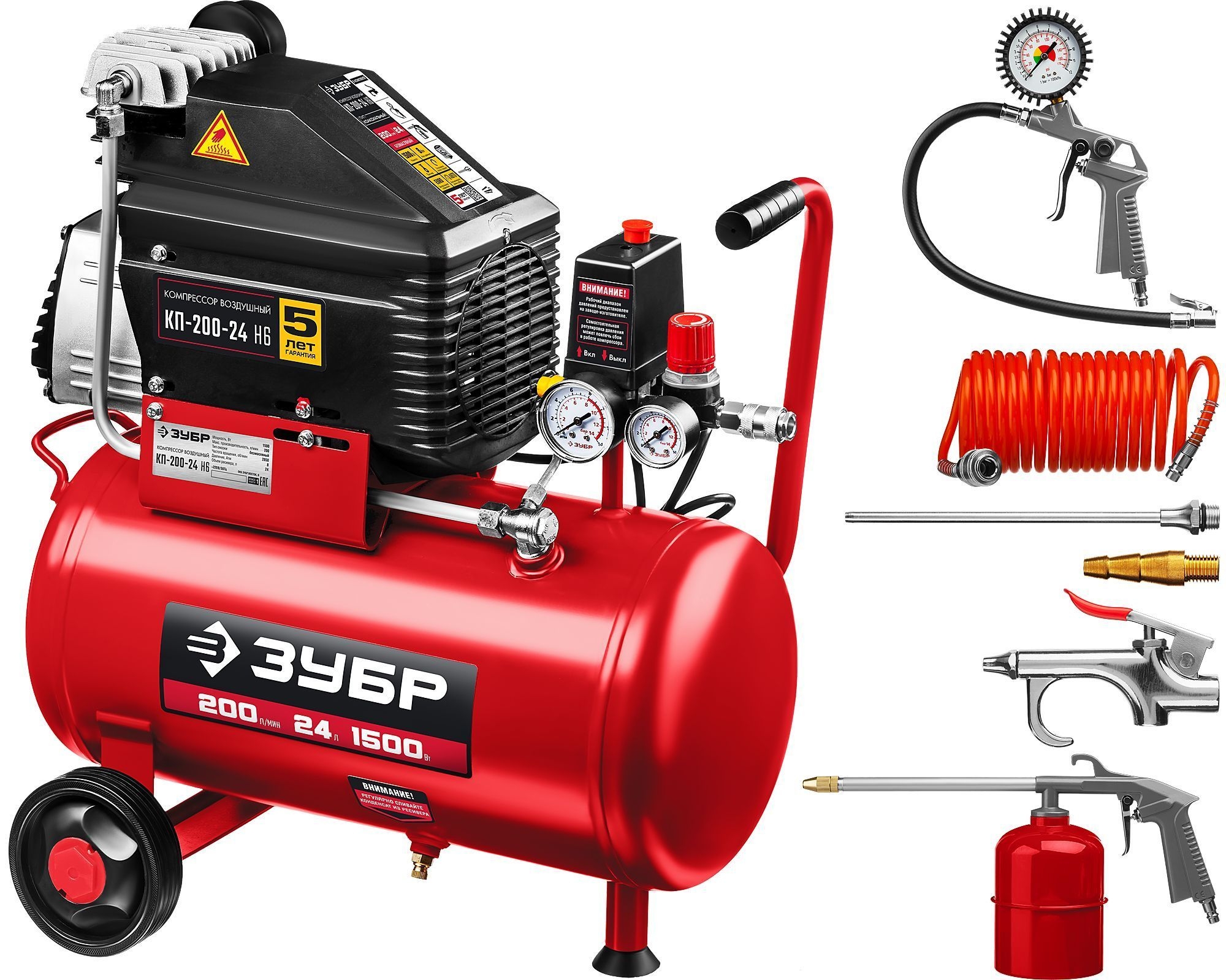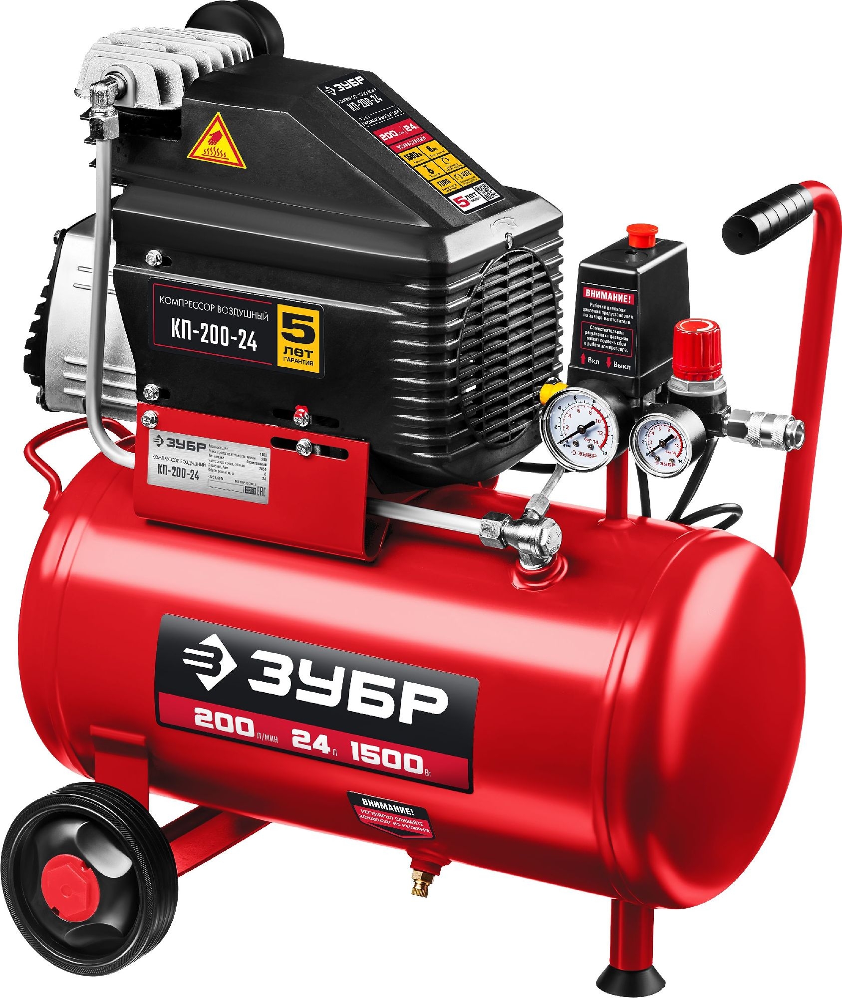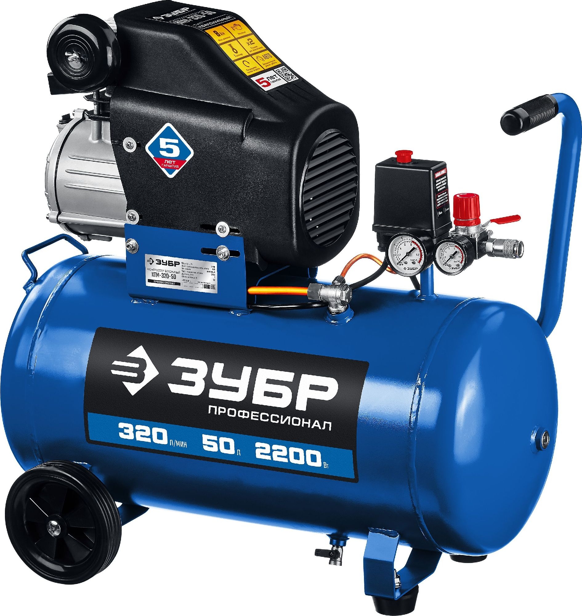 - Компрессор воздушный, 240 л/мин, 50 л, 1500 Вт, ЗУБР