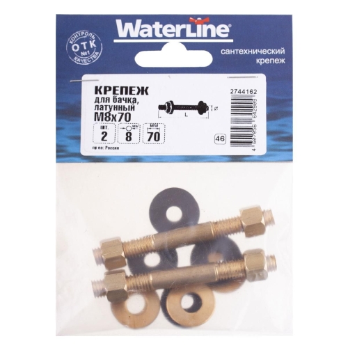 - Крепеж бачка к унитазу: 2 болта М8х70 в сборе с гайкой, прокладками, латунированный