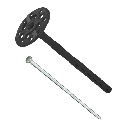 Описание товара: Состоит из дюбеля с двухсегментной распорной частью, имеющего увеличенную прижимную шайбу диаметром 60мм и гвоздя. Установка производится методом сквозного монтажа, крепление в стене производится забиванием стального гвоздя. В среднем на 1м2 площади теплоизоляции применяется 4-5 дюбелей. При монтаже тяжелых видов утеплителя применяются дюбеля с металлическим гвоздем.
