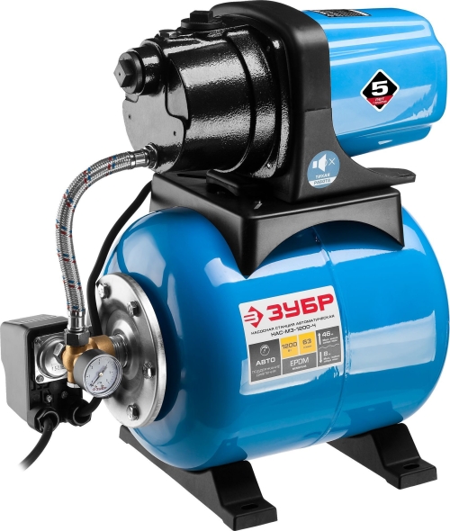 - Станция насосная ЗУБР "Мастер" М3 автоматическая, 1200Вт, пропускная способность 63л/мин, напор 46м,
