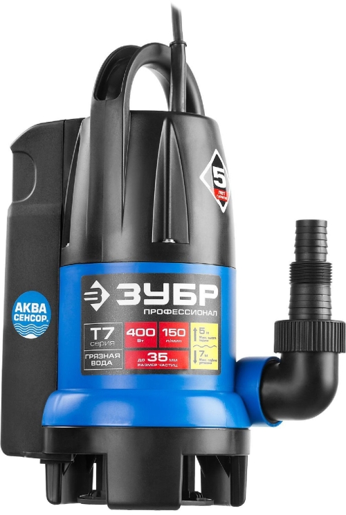 ЗУБР Профессионал НПГ-Т7-400 АкваСенсор, дренажный насос с регулируемым датчиком уровня воды, 400 Вт