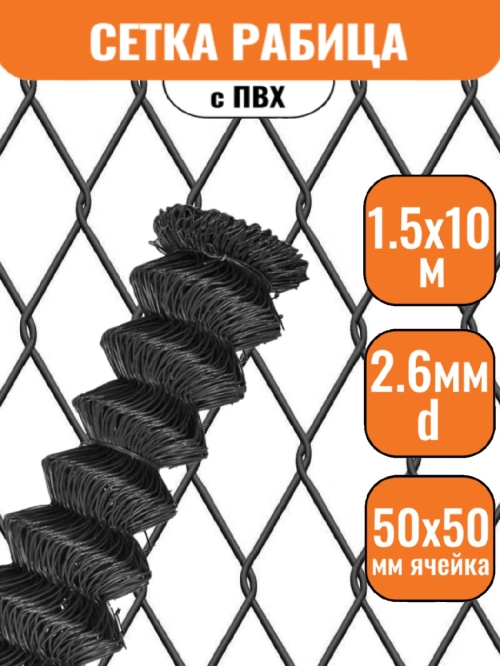 Сетка рабица в ПВХ 50х50 (1,5х10м) 2,6мм графит