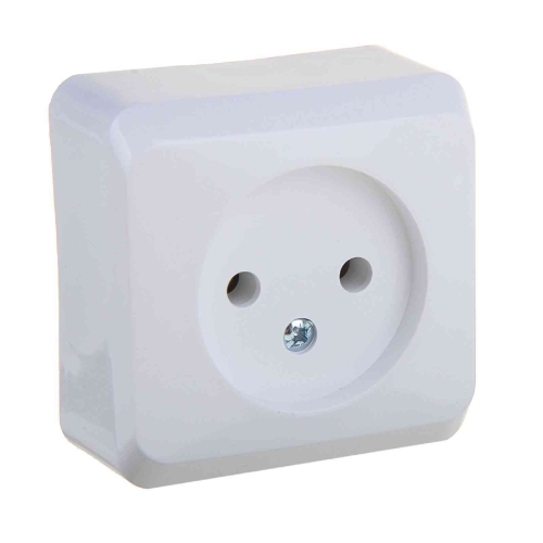 Описание товара: Одноместная электрическая розетка без заземляющих контактов, О/У - открытой установки. Конструктивно механизм электророзетки состоит из термостойкого электротехнического композитного материала, электрических контактов для электровилки выполненных из высокоупругой фосфористой бронзы и клемм для фиксации токопроводящего провода. Корпус произведен из облегченного износостойкого ABS-пластика белого цвета.