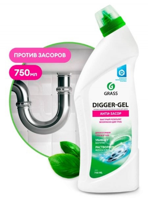 - Средство GRASS щелочной гель д/прочистки канализационных труб "DIGGER-GEL" (750 мл)/12