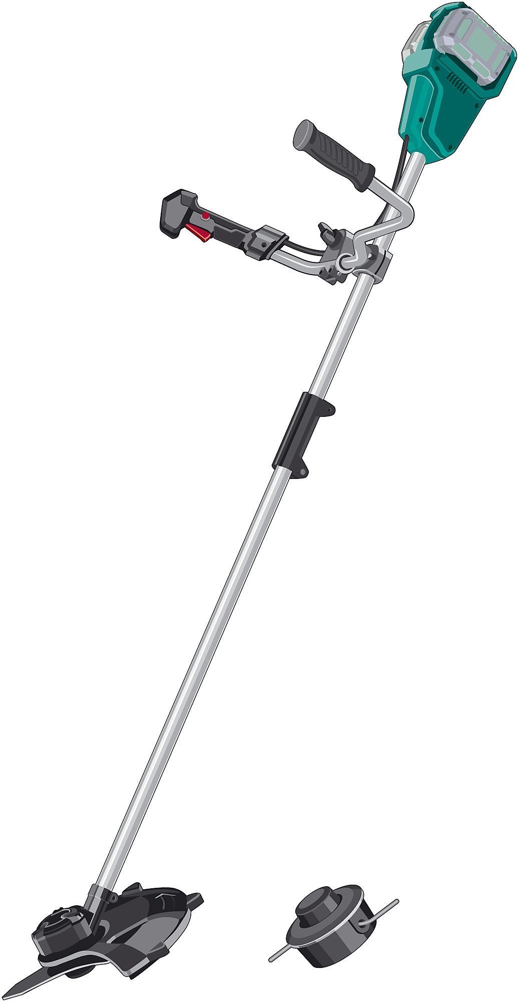 Комплектация: коса - 1 шт, аккумулятор - 1 шт, зарядное устройство - 1 шт, кожух защитный - 1 шт, катушка с леской - 1 шт, нож - 1 шт, плечевой ремень - 1 шт, рукоятка с крепежом - 1 шт, ключ - 1 шт, стопор - 1 шт, руководство по эсплуатации - 1 шт