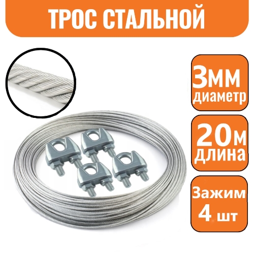 - Трос стальной DIN 3055 3мм (20м)+4 зажима