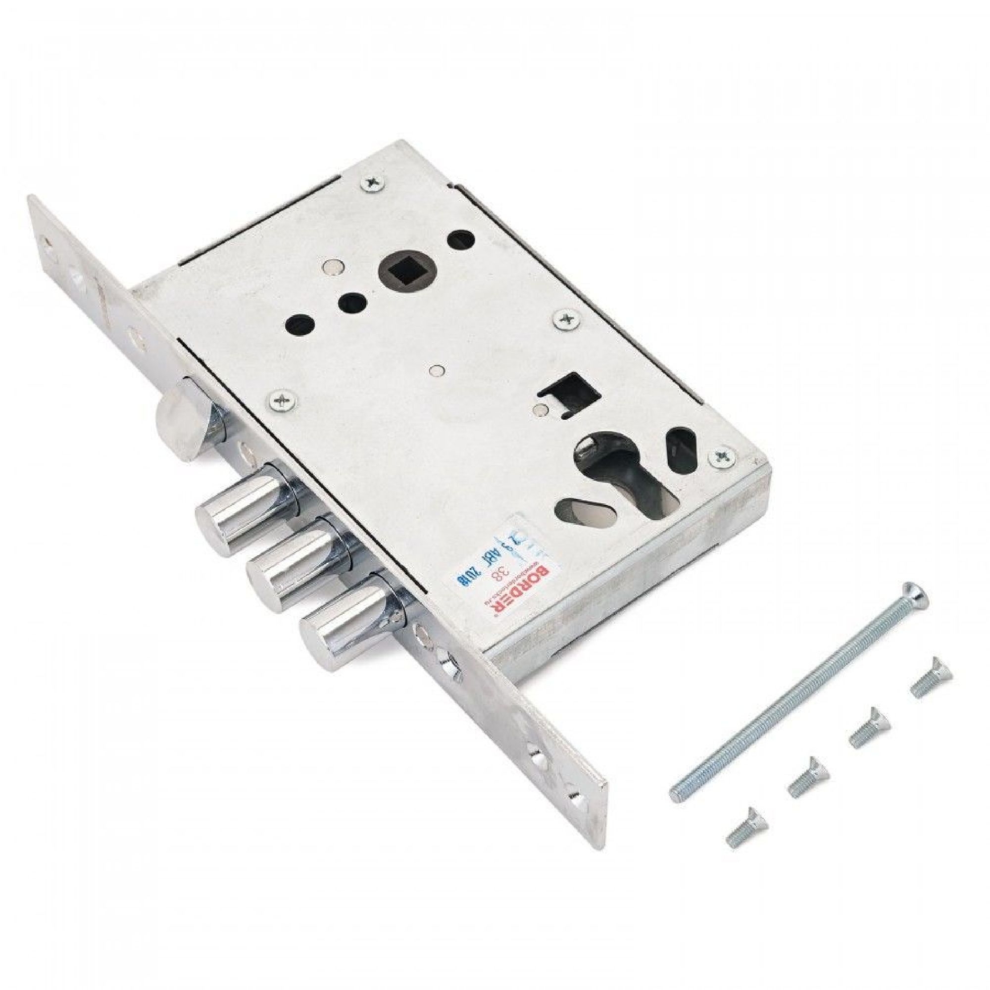 Удаление ключевого отверстия 53 мм. Габаритный размер корпуса без торцевой планки 77х81 мм. Комплектуется запорной планкой, комплектом накладок и комплектом для крепежа, 3 мя ключами.