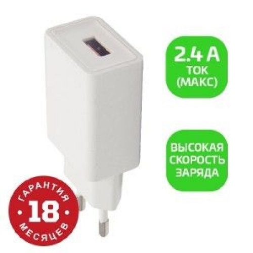 Описание товара: Зарядное устройство с USB-выходом мощностью 12 Вт в корпусе из премиальных огнеустойчивых материалов обладает повышенной надежностью и обеспечивает быстрый заряд энергоемких устройств током 2.4 А (макс).